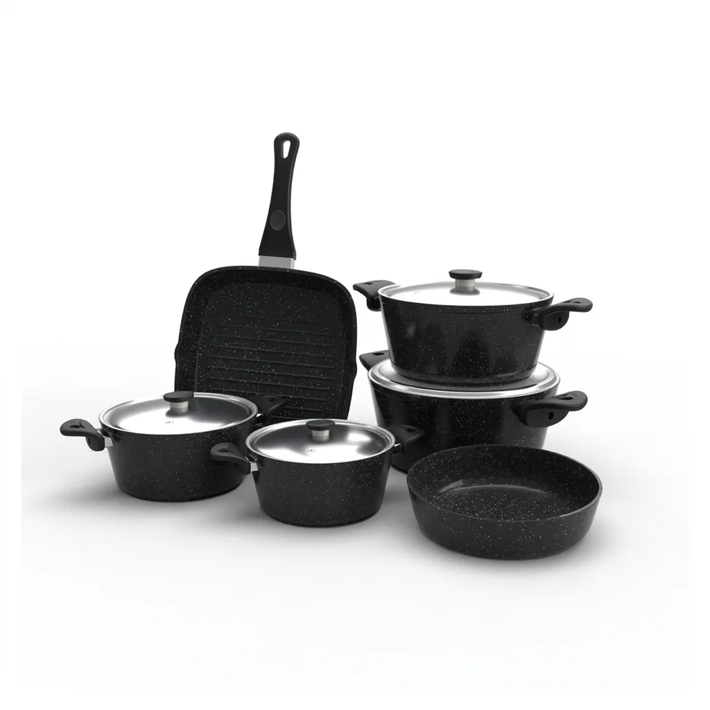 طقم توب شيف 10 قطعه مدور اسود ( ح18 / ح20 / ح24 ( ح28 / جريل28 / ص26 )