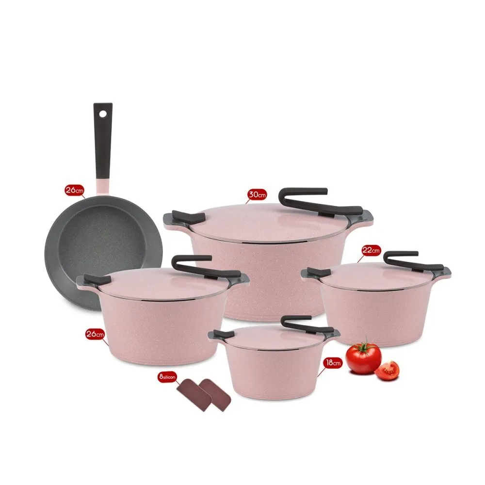 طقم جرانيت 9 ق(18-22-26-30) مقلاية 26 سم ارتيسان روز بيركس
