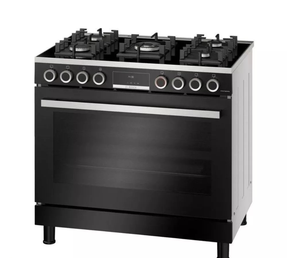 بوتاجاز بوش 90سم 5شعلة شاشة ديجيتال امان تام حوامل زهر مروحة فرن أسود HJY5G7V61S
