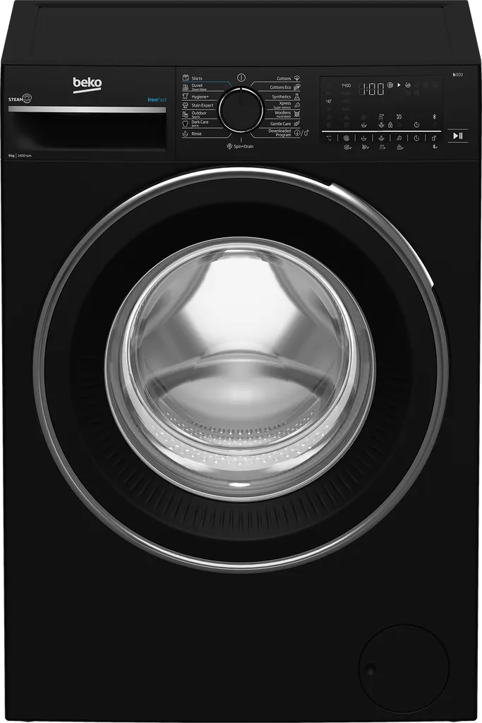 غسالة ملابس بيكو فول اتوماتيك (تحميل امامي) 9ك 1400لفة اسود ديجيتال باب كبير بخار انفرتر بلوتوثB3WFU50940BCI