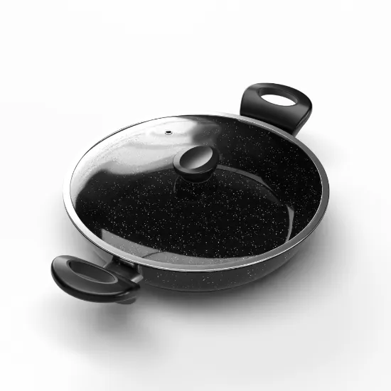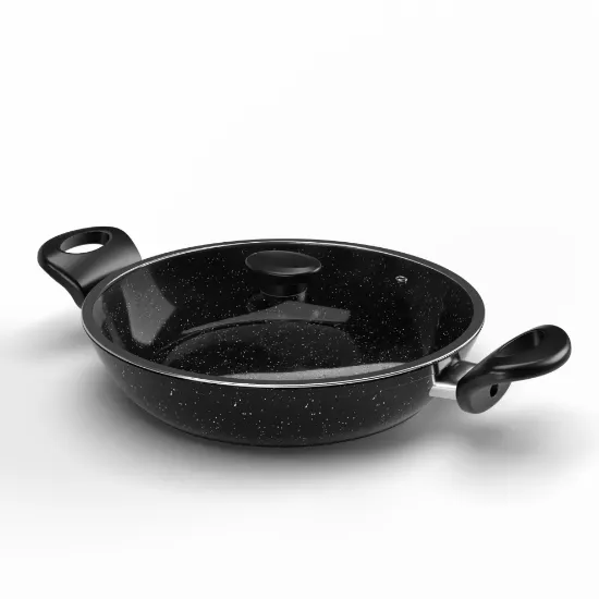 طبق بيض توب شيف 26 مدور اسود بغطاء زجاجى فريم استانلس