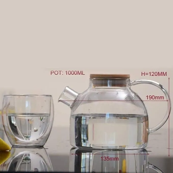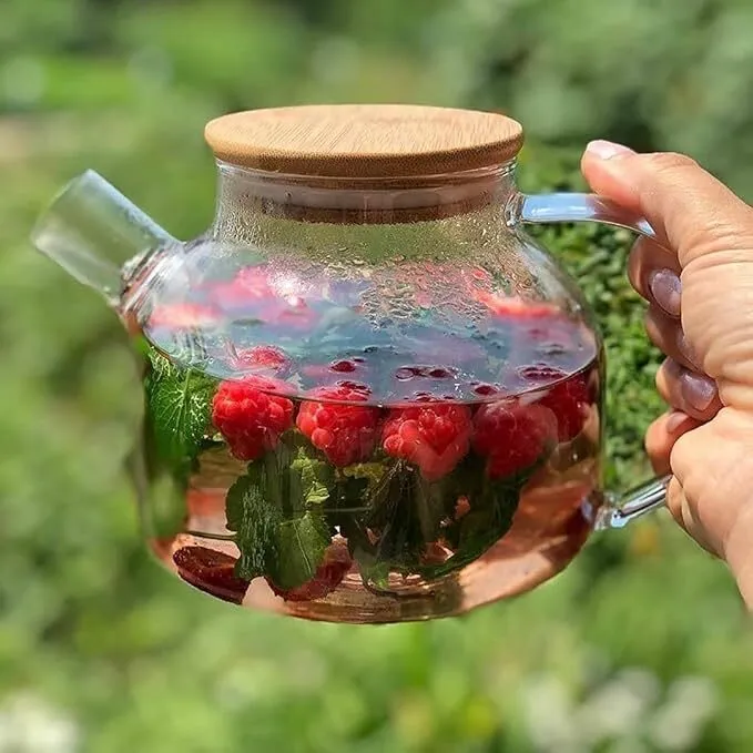 إبريق شاي زجاجي عصري بغطاء خشبي