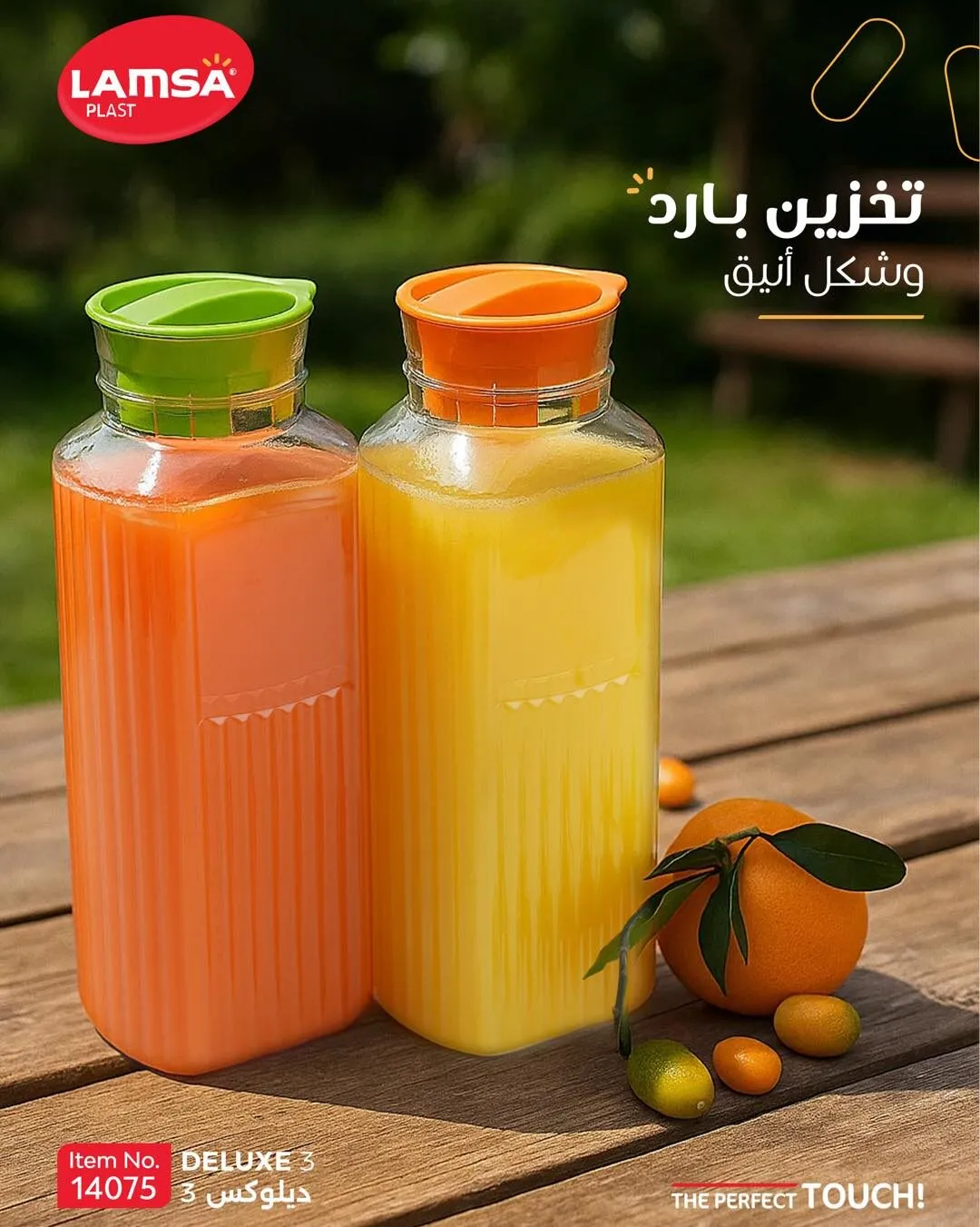 تأتي بسعة مناسبة لحفظ المشروبات الباردة كالعصائر والمياه في الثلاجة، مع غطاء محكم يمنع الانسكاب ويحافظ على نضارة المشروب.