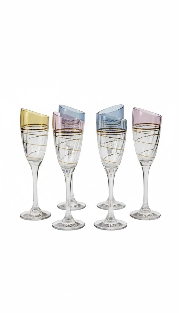 لمسات ذهبية متدفقة: كل كأس مزين بخطوط ذهبية دقيقة ومتعرجة تلتف حول الجزء العلوي، مما يمنحه بريقًا فاخرًا