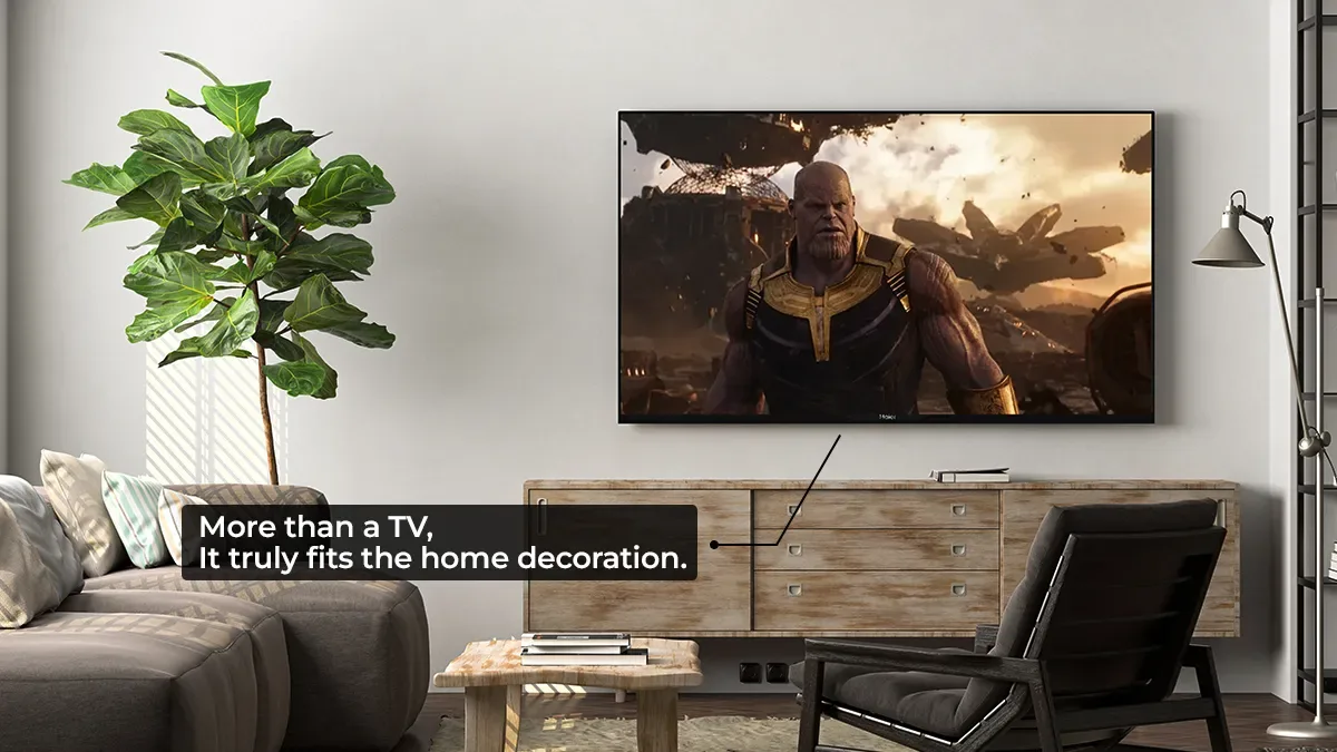 تلفزيون مصمم بحواف ضيقة ليكون تركيزك بالكامل على الصورة وليس على الإطار , يمتزج هذا التلفزيون بانسيابية مع ديكور منزلك، وخاصة عند تركيبه على الحائط