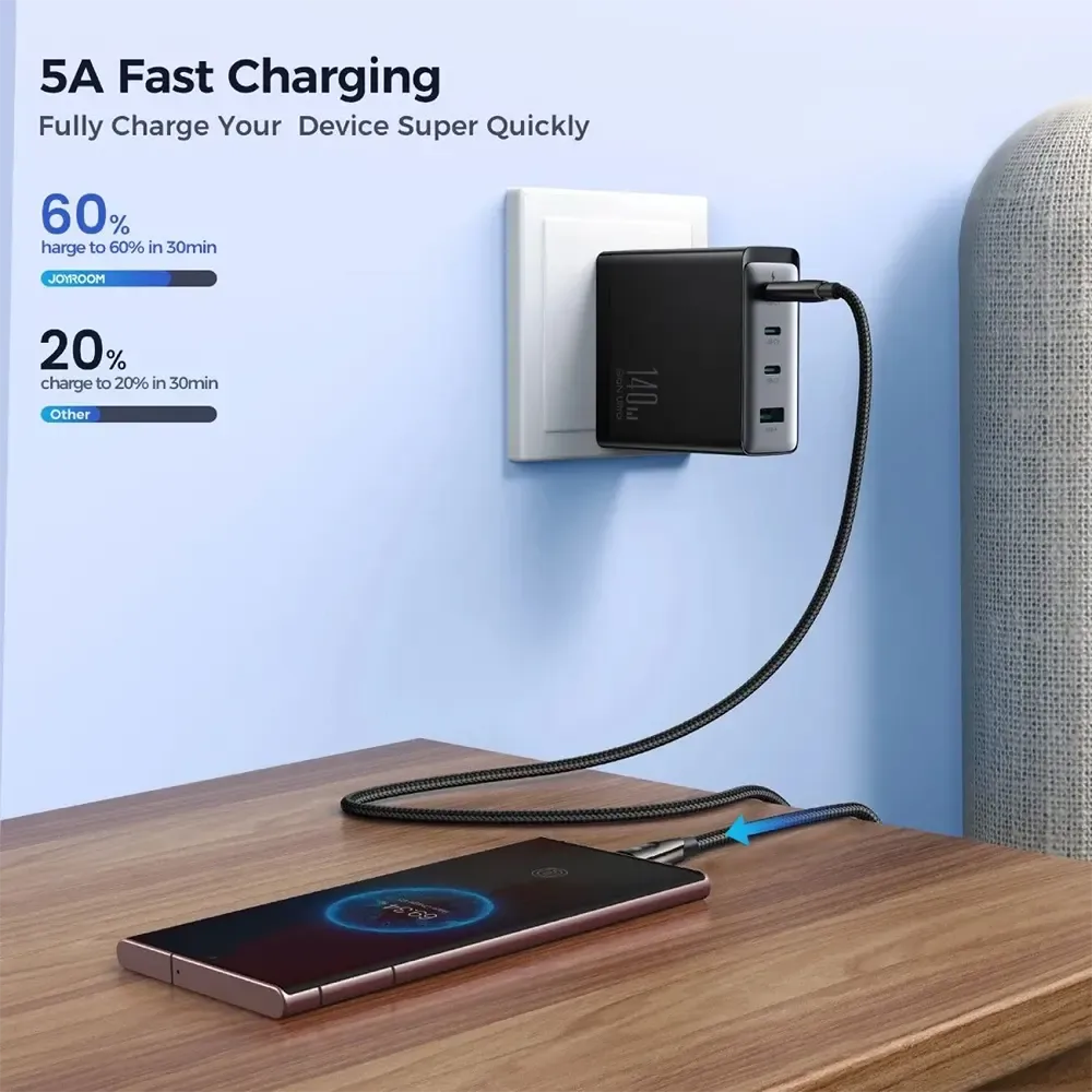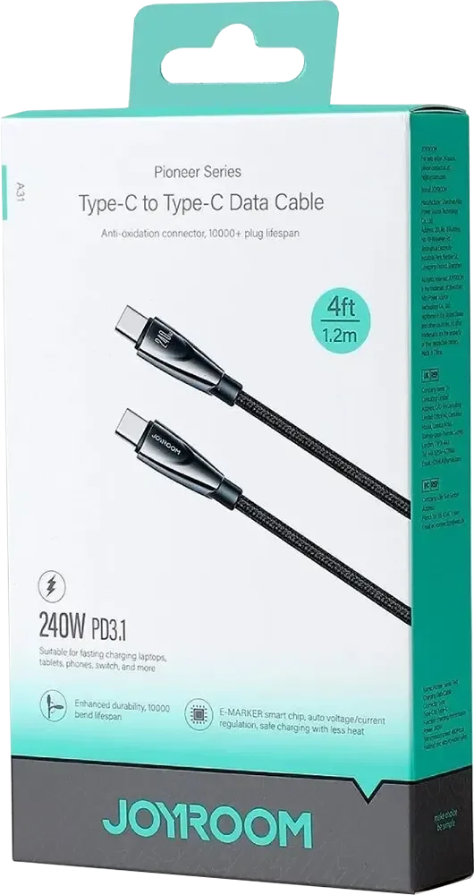 وصله joyroom Type-C to Type-C قدرة 240 واط – طول 1.2 متر – لون أسود – SA31-CC5 – ACC