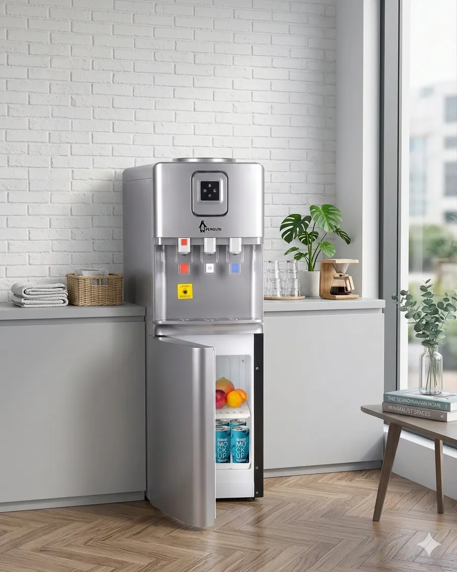 يجمع مبرد مياه بينجوين بين التكنولوجيا المتطورة والتصميم الفضي الأنيق، ليوفر لك الراحة التامة في المنزل أو المكتب مع ميزة التبريد المدمجة.