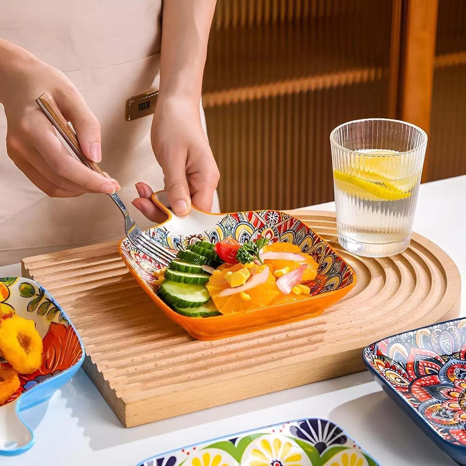 إنها مزيج عملي من صينية الخبز وأدوات المائدة اليومية، مما يوفر الراحة عند إعداد الطعام والخبز وتقديم الطعام، مما يجعل التجمعات العائلية والعشاء غير الرسمي أكثر متعة واسترخاء