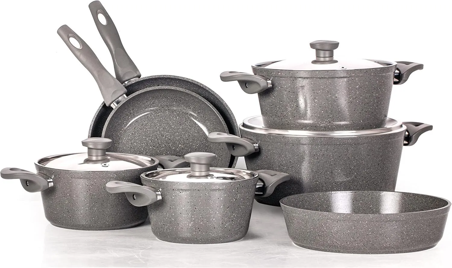طقم توب شيف 11 ق مدور رمادي (حلة 28/ 20/24/ 18)+صينية 26 +مقلاية 22-26