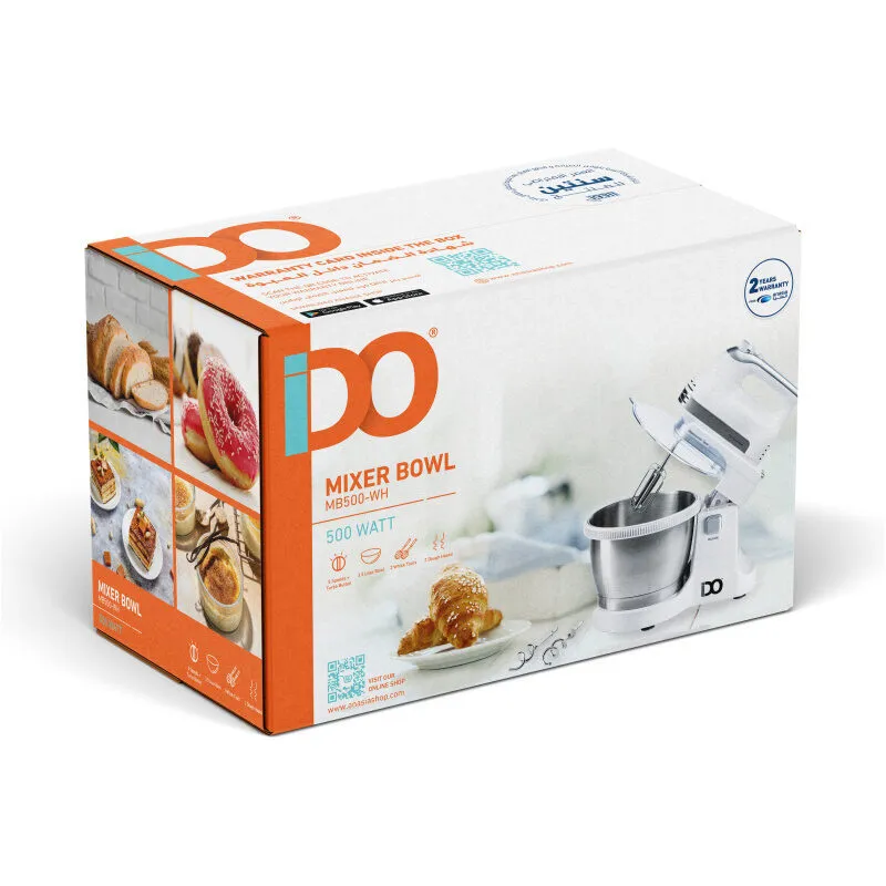 مضرب بالعجان اي دو 5سرعات 500وات 3.5لتر وظيفة التربو ابيض105-MB500-WH