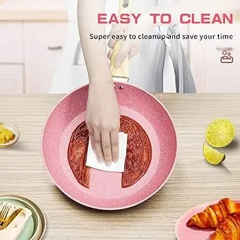 طبقة غير لاصقة عالية الجودة: تمنع التصاق الطعام وتتيح طهي الأطعمة بأقل كمية من الزيت