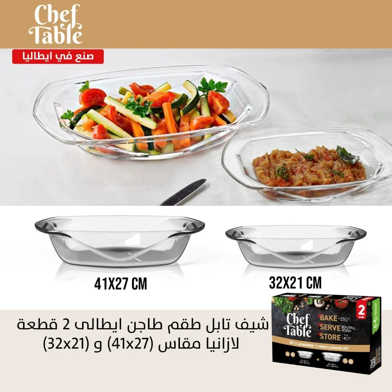 شيف تابل طقم طاجن إيطالي 2ق لازانيا مقاس(7*41)و(21*32)