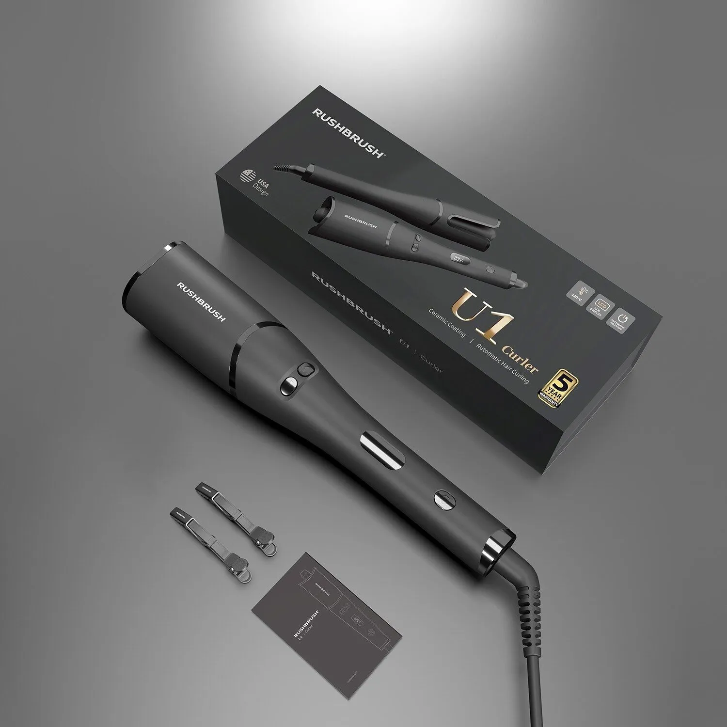 U1 مكواة تمويج الشعر راش براش اسود