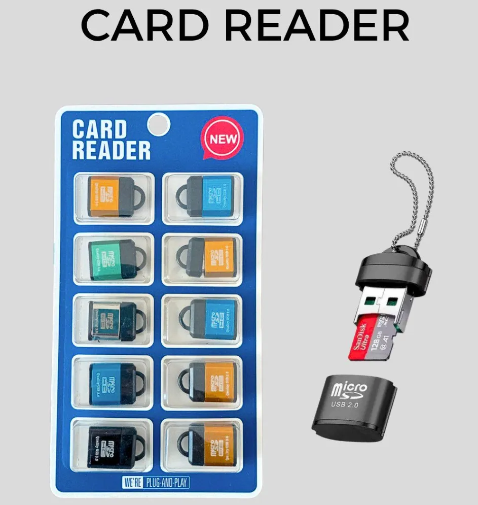 اجعل نقل ملفاتك وصورك أسهل وأسرع مع أصغر قارئ كروت Micro SD. يتميز بتصميم عصري وحجم متناهي الصغر يجعله رفيقك المثالي في العمل، الدراسة، أو السفر.