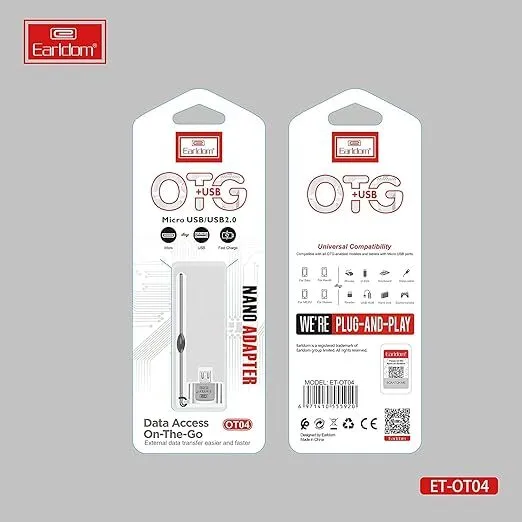 يمكن استخدام تحويلات او تي جي في الموبايلات التي تدعم تحويل او تي جي. يتميز محول ET-OT04 او تي جي من ايرلدوم بسرعة مناسبة لنقل البيانات. يتم توصيل محول او تي جي من ايرلدوم ET-OT04 بحزام لسهولة التخزين. محول ET-OT04 او تي جي من ايرلدوم هو محول لجميع أنواع موبايلات اندرويد وذاكرة الفلاش والماوس والكيبورد والمروحة والكاميرا ولوحة الألعاب والميكروفون وسماعة الرأس و… التي تدعم وظيفة او تي جي.