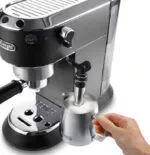 احصل على لبن برغوة مميزة بفضل نظام الكابتشينو الذي تتميز به ماكينة ديلونجي مع ذراع صنع الرغوة اليدوي