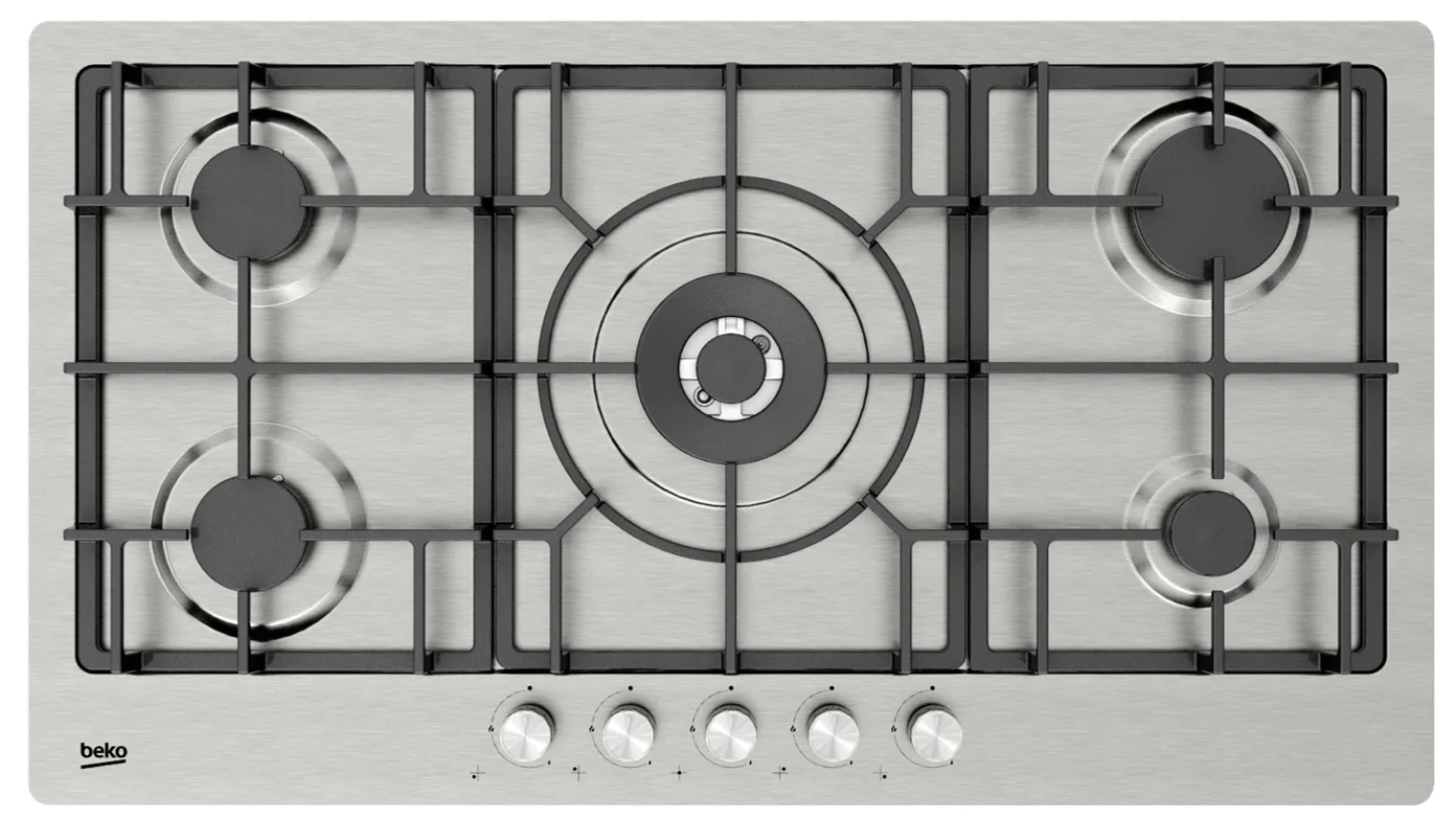 مسطح بيكو غاز 90سم 5شعلة حوامل زهر اشعال ذاتي امان كامل ستانلس HIMW95226SXEL
