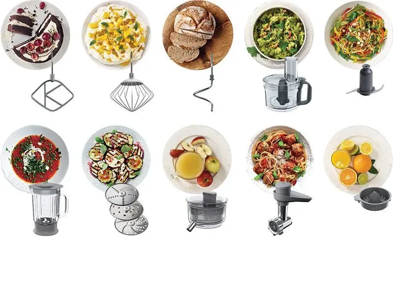 يأتي الجهاز بمجموعة واسعة من الملحقات لجعل عملية تحضير الطعام أسرع وأسهل