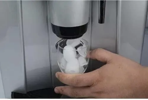 يصدر صوت أنذار عند أمتلاء تنك تخزين الثلج كما يصدر صوت انذار أيضا عند أنخفاض معدل المياة بالجهاز لاعادة ملئة مجددا